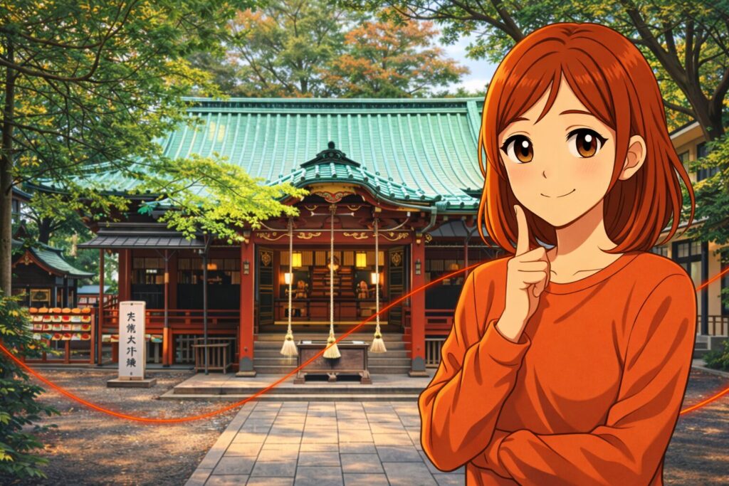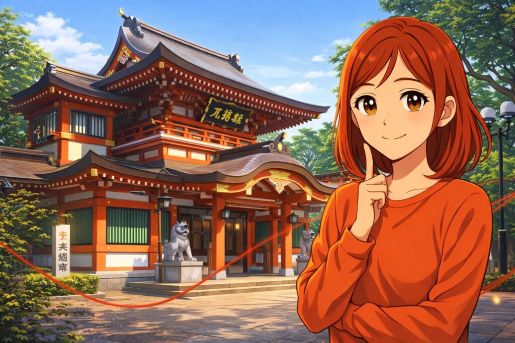 | 復縁ポイント | 都会の真ん中で「静寂」を感じることが、乱れた波動を整える鍵です。境内での瞑想中はスマホを機内モードにし、短時間のデジタルデトックスを行いましょう。 |